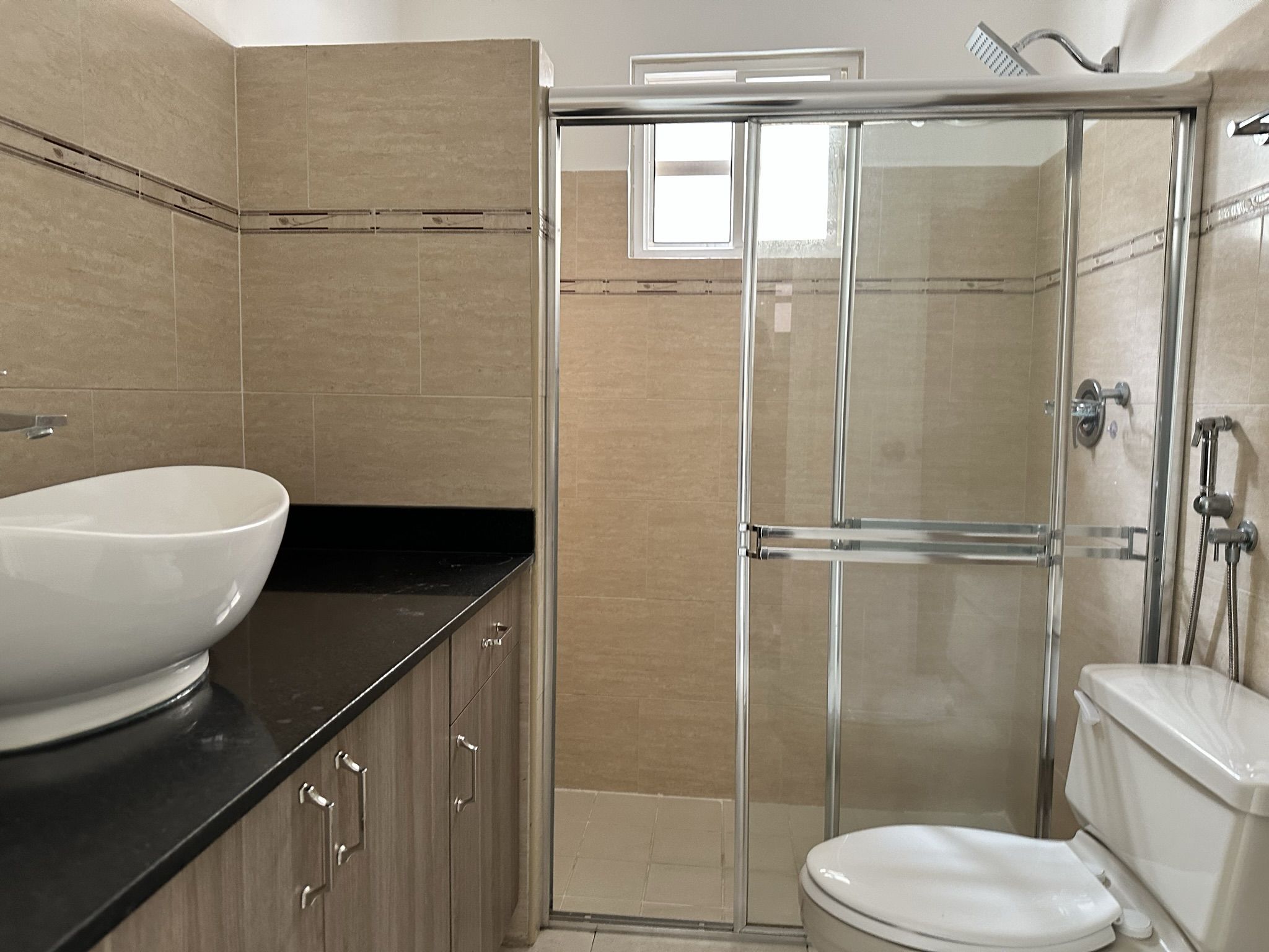 Entre la cocina y sala se encuentra un pasillo con una puerta de vidrio que accede a las recámaras, en esta área podemos encontrar 2 recámaras secundarias muy iluminadas con closet de madera y un baño el cual comparte estas recámaras. Pero tiene posibilidades a realizarle un baño a cada una, organizando los espacios. Adicional se encuentra una recámara principal muy amplia con su baño interno y walk in closet, esta recámara es muy fresca, luminosa y amplia.