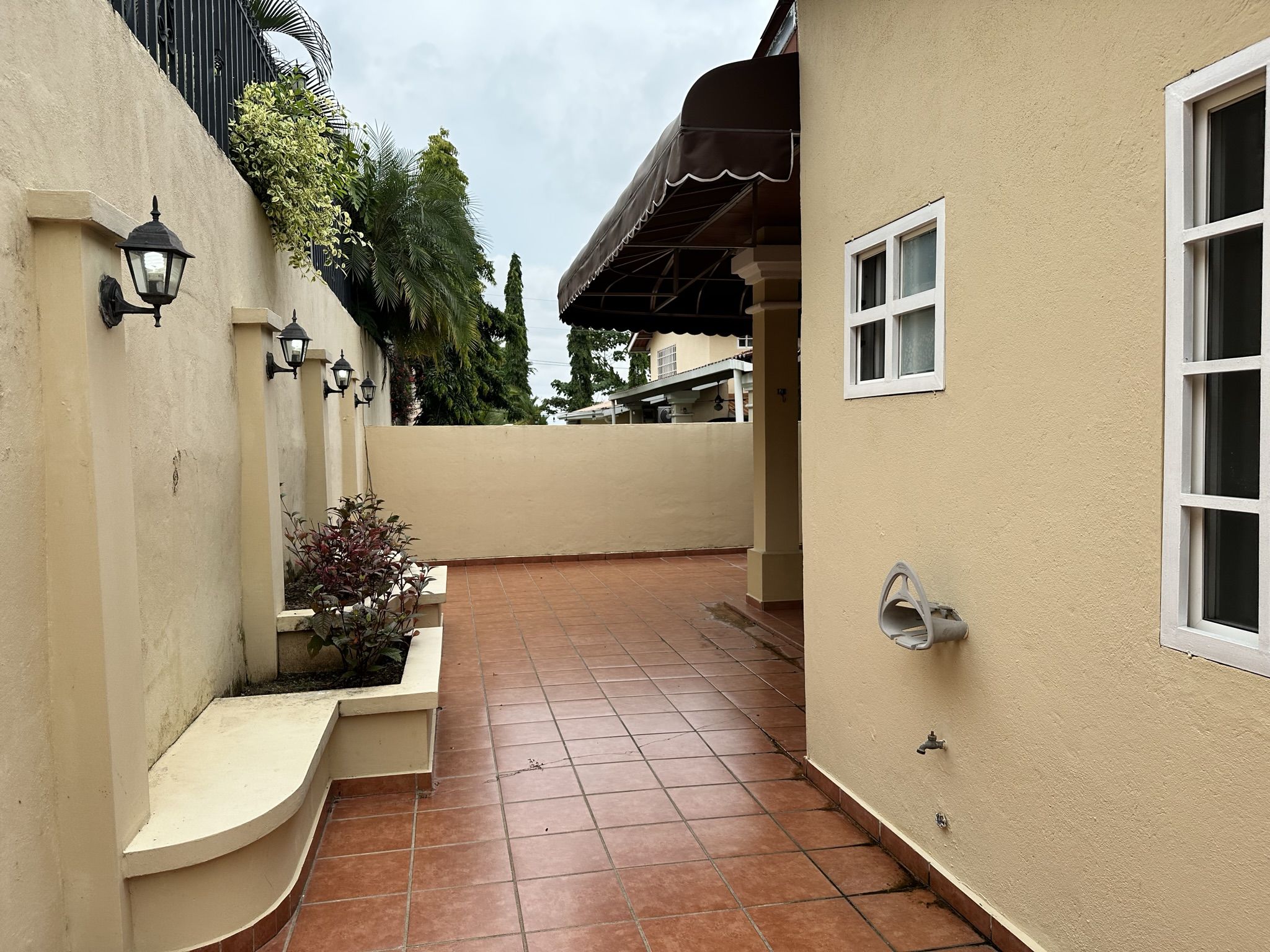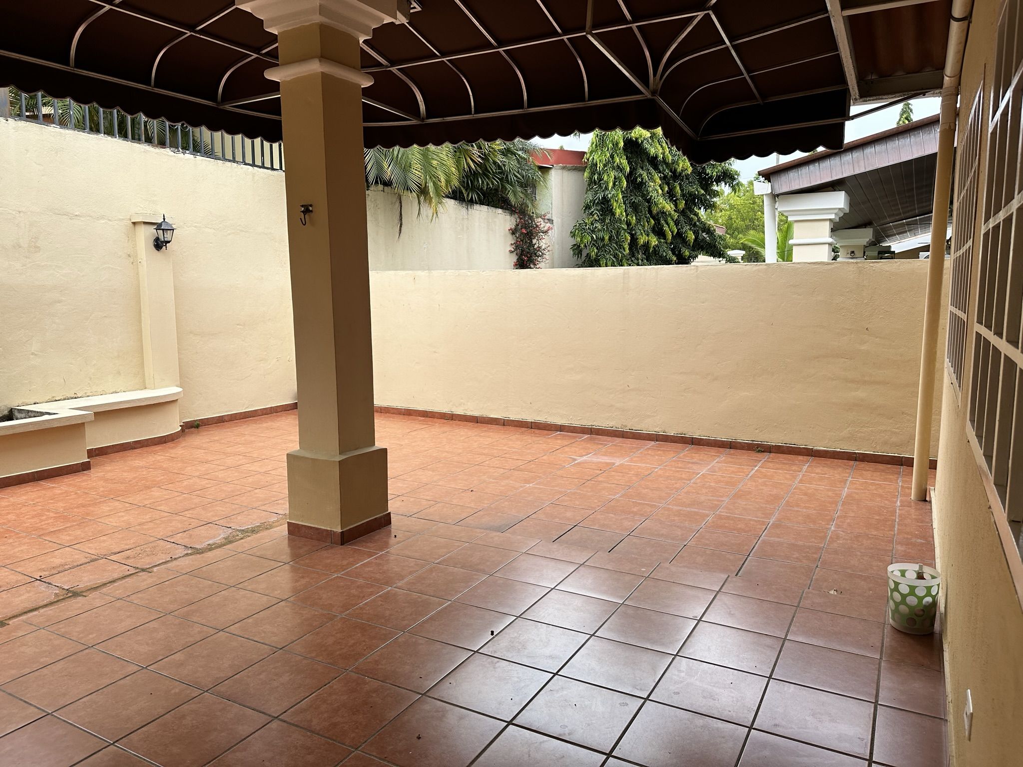 Seguido del área de comedor está una puerta que te da salida directa a la terraza trasera techada, muy amplia y con pisos terracotas, que le dan un estilo campestre, posee un área para sembrar tus plantas, y la misma posee pasillos laterales por medio del cual podrás darle la vuelta a la casa, pero posee puertas laterales para que nadie pueda acceder a la terraza sin permiso.