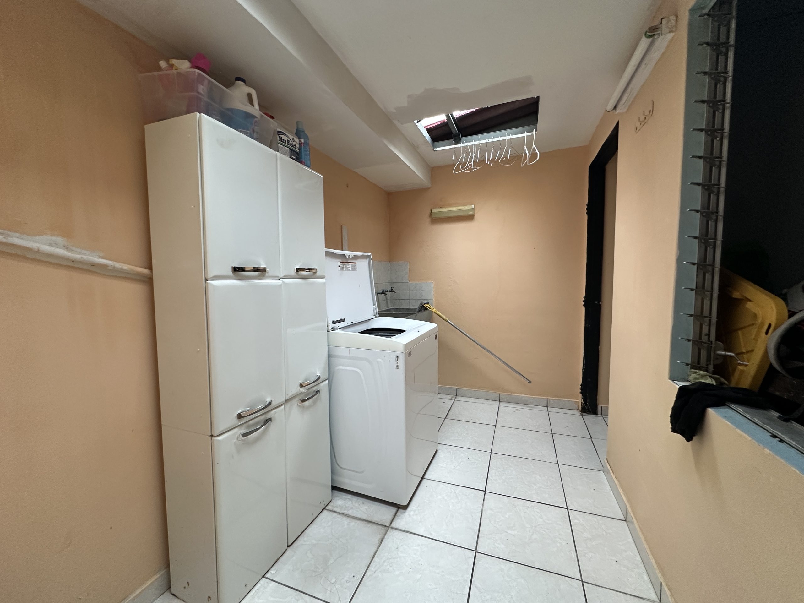 La lavandería está completamente cerrada, lo que garantiza privacidad y orden, además de contar con un depósito interno, ideal para guardar herramientas, maletas o artículos de temporada.