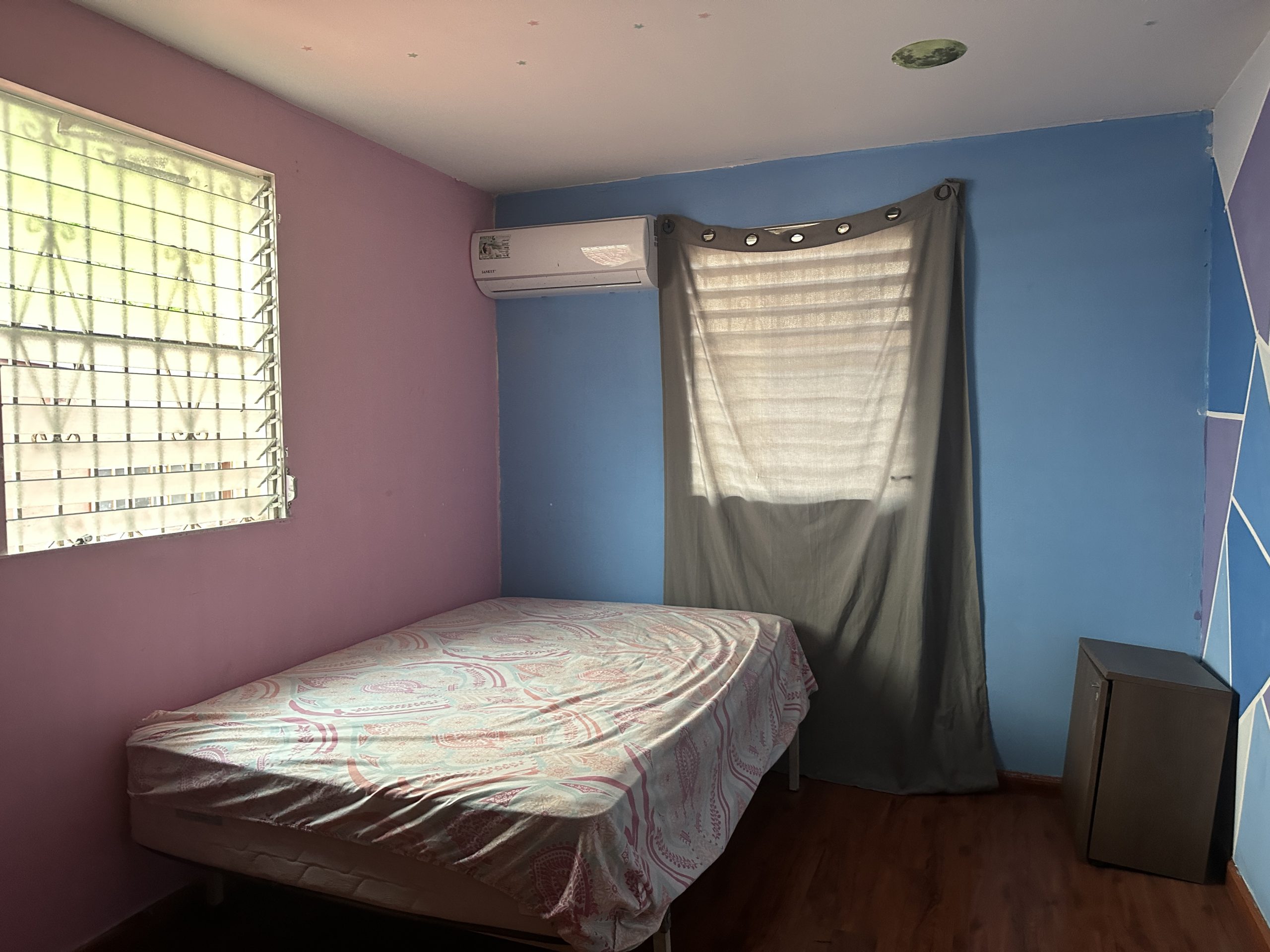 A mano izquierda, se encuentra la joya de la propiedad: una recámara principal de gran tamaño, comparable al espacio de dos habitaciones. Esta cuenta con un baño privado y acceso a un balcón cerrado con verjas de hierro, ideal para disfrutar de una vista relajante o incluso como un rincón de lectura o meditación.